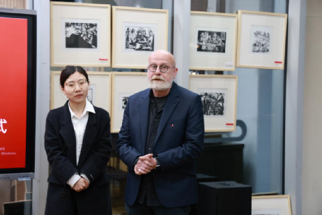 随后,彼得·博斯蒂尔教授进行了致辞发言。他简要介绍了入校以来为期一个月的课程安排与教学推进情况,对版画系全体教师在教学筹备与工作对接中的支持配合表示诚挚感谢。他充分肯定并高度赞扬版画系学生扎实的专业基础、丰富的创作构思以及认真专注、勤于探索的学习态度,并对后续阶段的深度教学与学术交流寄予良好期许。